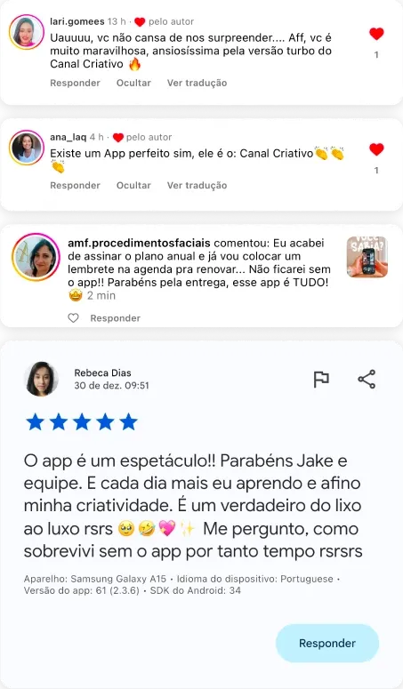 Mais de 21 mil criadoras já usam o Canal Criativo para criar conteúdo que engaja e encanta em segundos.